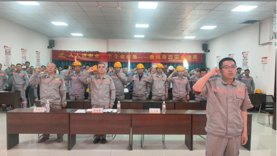 在醒目浓厚的安全目视氛围中,现场首先进行了庄严的安全宣誓。誓 言声声,铿锵有力;誓言诚诚,催人奋进;传递出鼎新人对生命的敬畏和 创造优秀安全绩效的郑重承诺。
