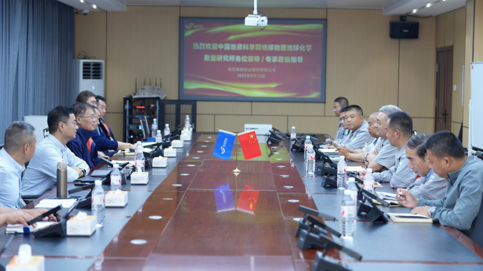 2025 年9 月12 日,由中国地质科学院地球物理地球化学勘查研究所(下称:物化探所)党委书记覃家海带领的专家组一行8 人到访哈密suncitygroup太阳新城股份有限公司(下称:suncitygroup太阳新城)。suncitygroup太阳新城总经理江山对专家组的到来表示热烈欢迎,并与专家组进行了会谈交流。土屋铜矿采矿场场长张延东、北京矿产地质研究院在矿专家阴元军教授等出席会谈。
