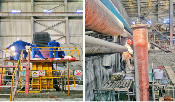为了第四季度的高作业率,减少意外停机,为生产顺利进行提供有利保障,对球磨机圆筒筛筋板进行加固、焊接,焊补、修复浮选机槽体、外委单位修理球磨机大齿轮、安装并修复1号原矿泵出浆管弯头。