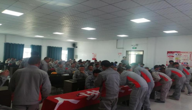 四、随后全体起立,高举右拳,开展安全宣誓。全体员工高声宣誓:“我宣誓,牢记安全第一,严格遵章守纪。杜绝三违行为,保证四不伤害。为了家人幸福,我要安全,我爱焱鑫。”宣誓声激情饱满,声音洪亮,是全体焱鑫员工安全上砥砺前行,履行安全职责的铮铮诺言!