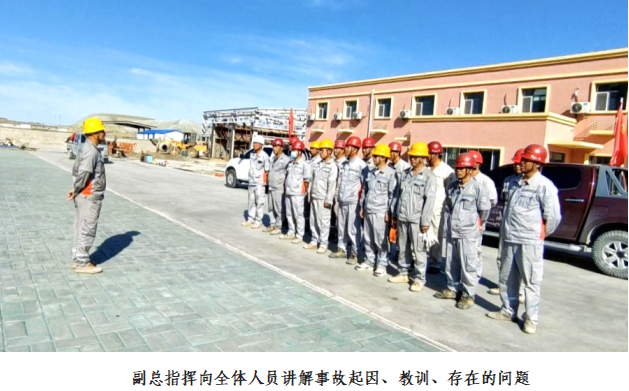 9:43分各救援小队到选厂办公楼前集合,向总指挥李文报道。总指挥李文宣布由副总指挥万鹏程组成事故调查组,进一步查清原因,落实责任,处理相关责任人。由副总指挥向全体人员讲解事故起因、事故教训、事故控制、救助过程中存在的问题。
