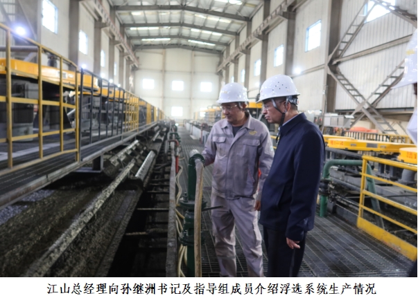 随后指导组视察了选矿厂磨矿及浮选系统生产情况,总经理江山对土屋铜矿一、二期综合日处理能力、选矿厂设备情况、工艺流程等进行介绍。
