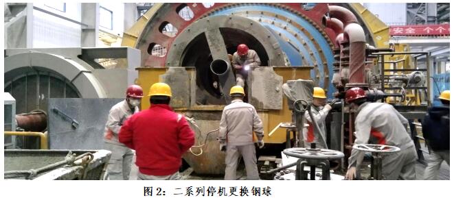 除此外,停机检修前排空球磨内矿料、原矿泵池、浮选槽和搅拌筒;冲洗原矿泵及原矿泵管道和旋流器沉砂槽,浮选槽、中间箱和泡沫槽;排空浮选槽和球磨机平台下方的矿浆和积水,为球磨机倒出的钢球准备存放空间,一、二系列停机检修前分别提前10小时已做好外供水的减量工作。