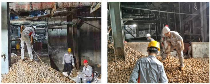 在一系列钢球更换现场,办公室人员积极参与到球磨二系列钢球的分拣工作中,在领导的引导下迅速且有序地完成了分拣任务,及时清理了球磨机下方的平台,为其他检修工作创造了有效的作业空间。